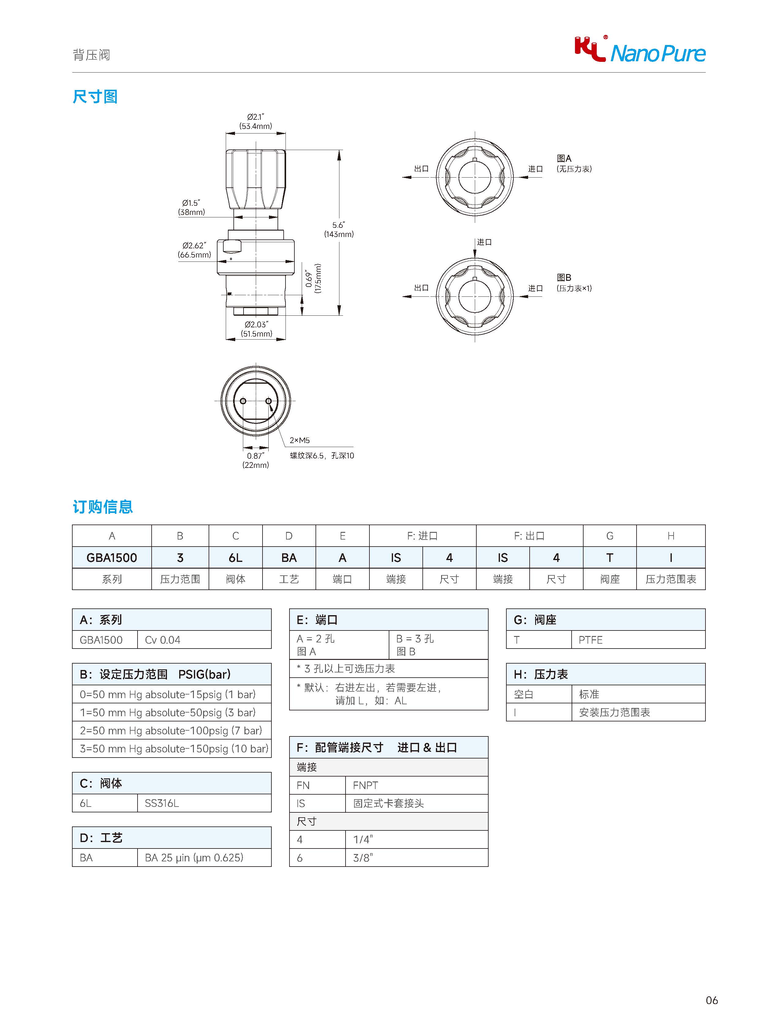 Please check on the below page and Meets the GBA1500 Back Pressure Valve, The Nanopure ordering number available with size selection.