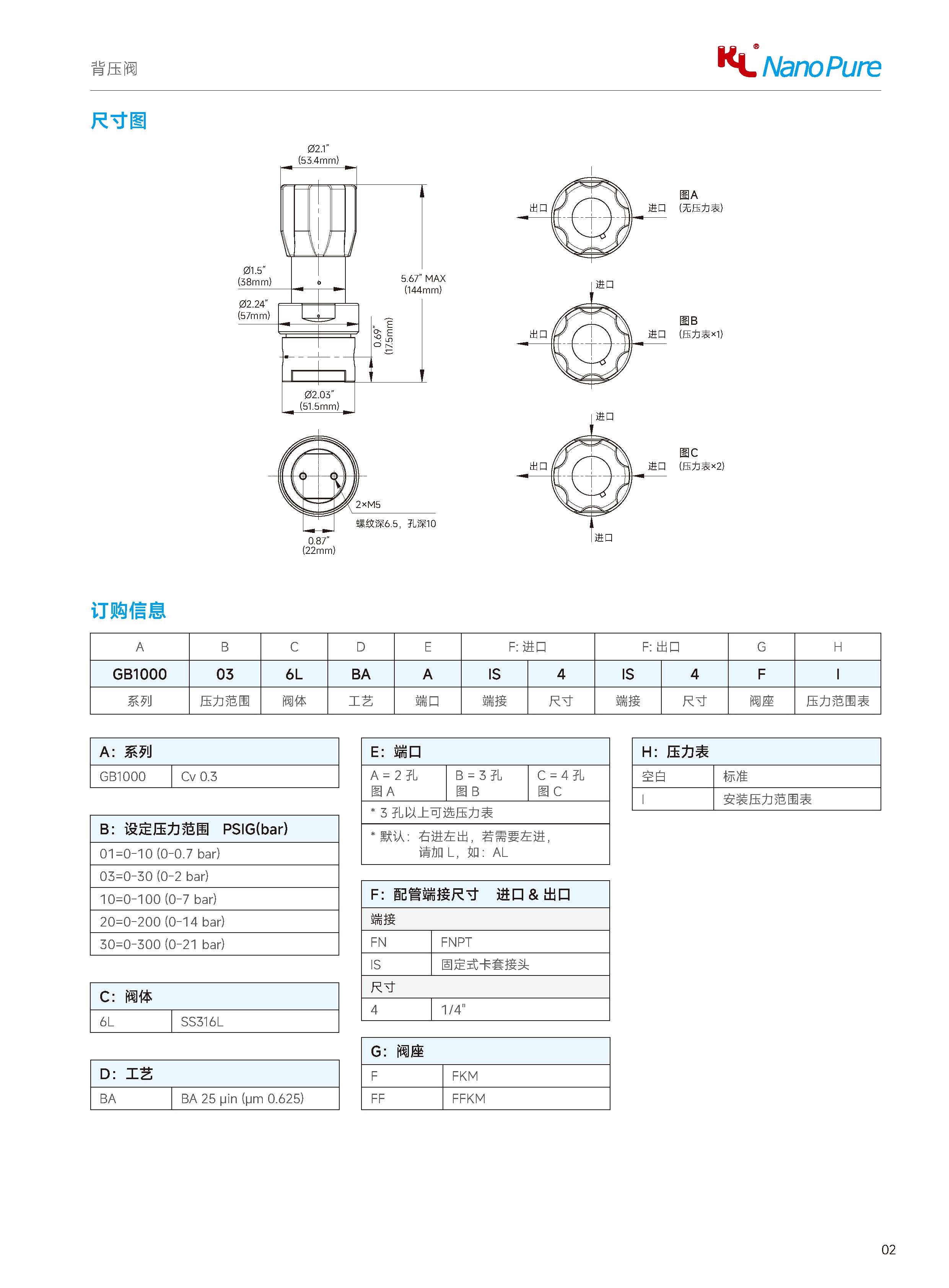 Please check on the below page and Meets the GB1000 Back Pressure Valve, The Nanopure ordering number available with size selection.