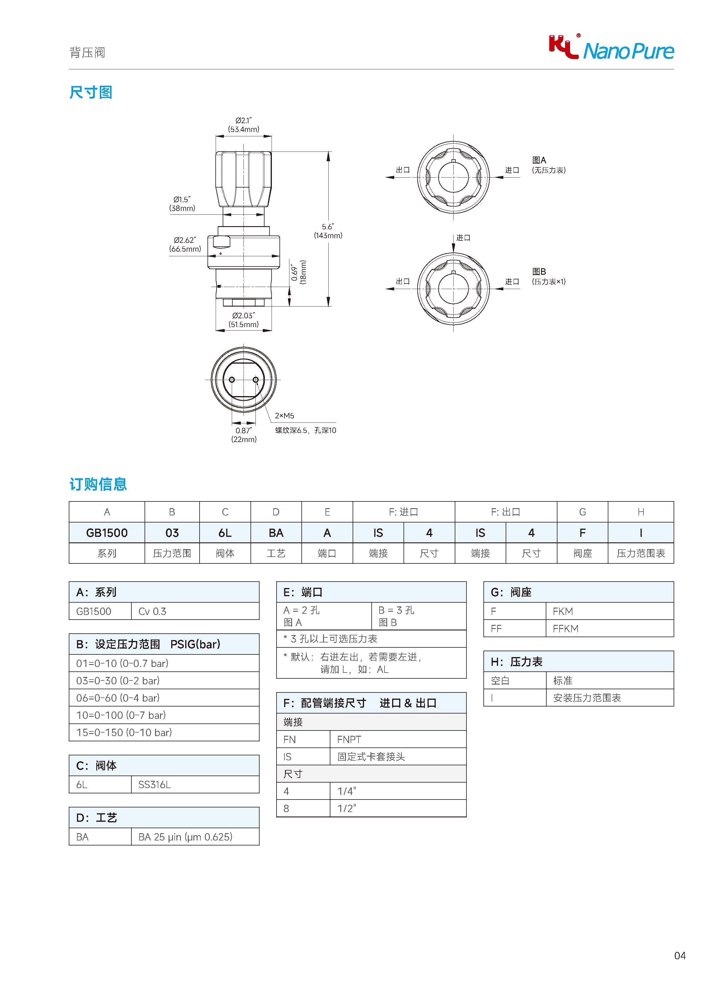 Please check on the below page and Meets the GB1500 Back Pressure Valve, The Nanopure ordering number available with size selection.