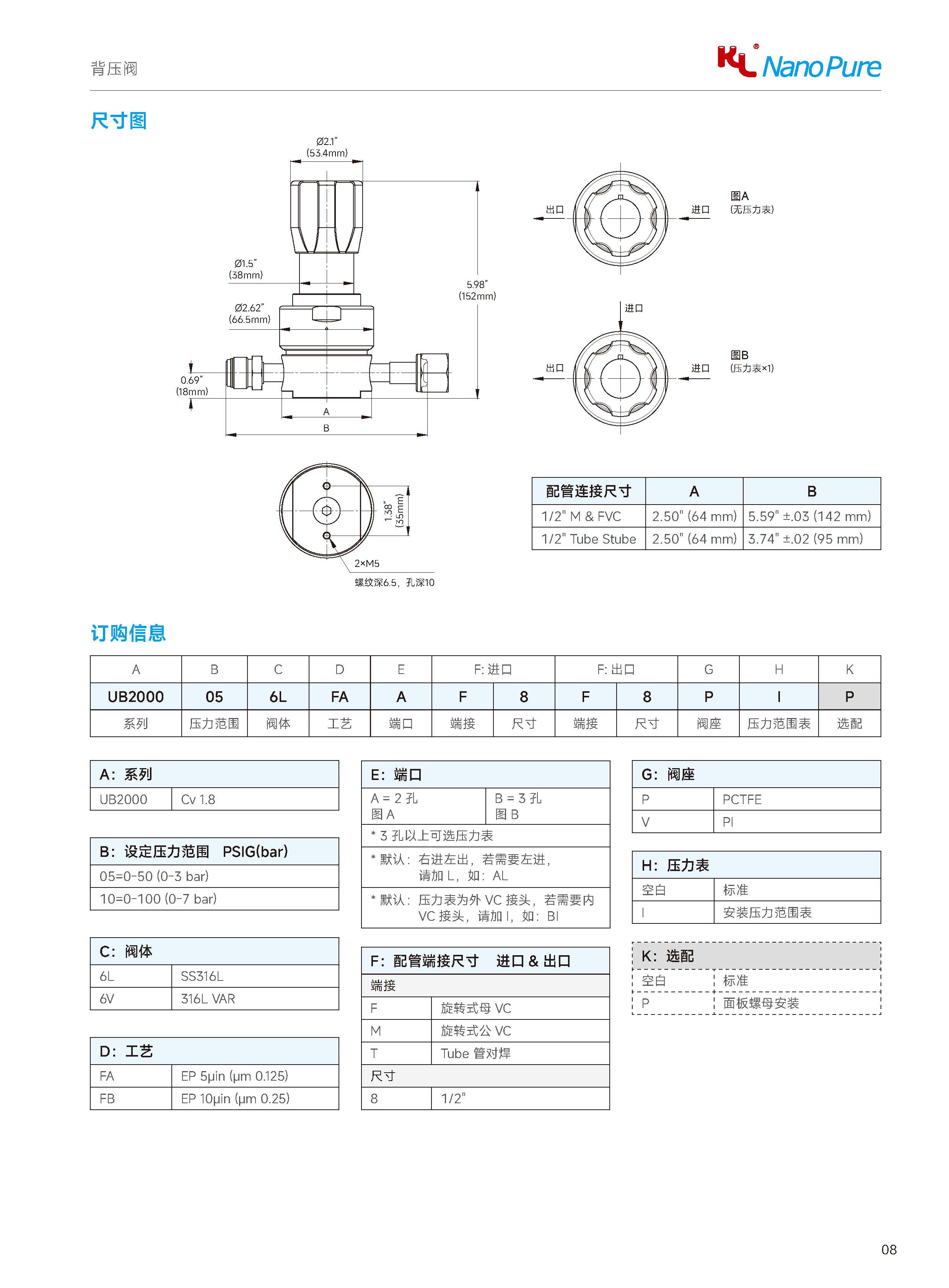 Please check on the below page and Meets the UB2000 Back Pressure Valve, The Nanopure ordering number available with size selection.