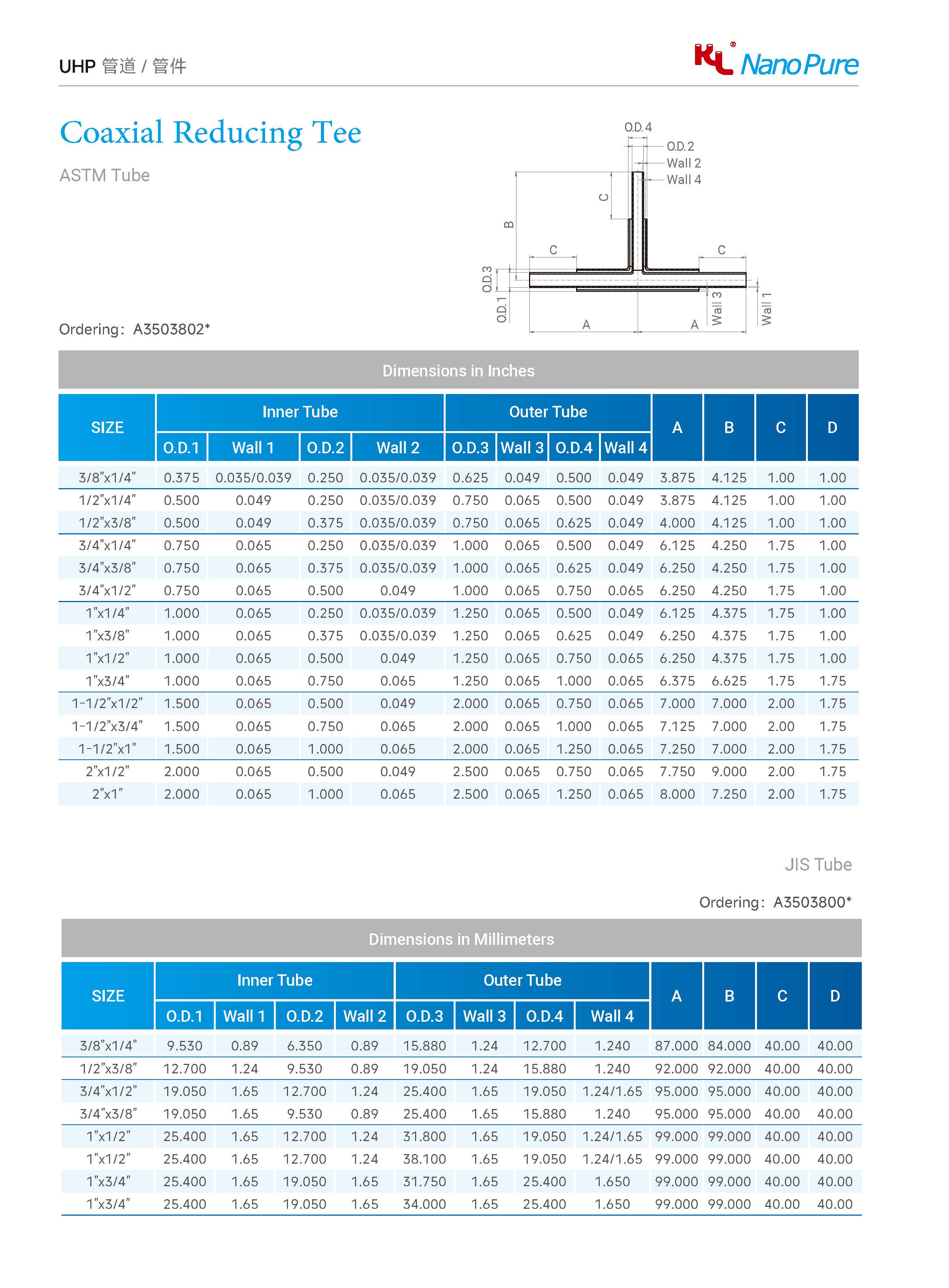 Coaxial Reducing Tee