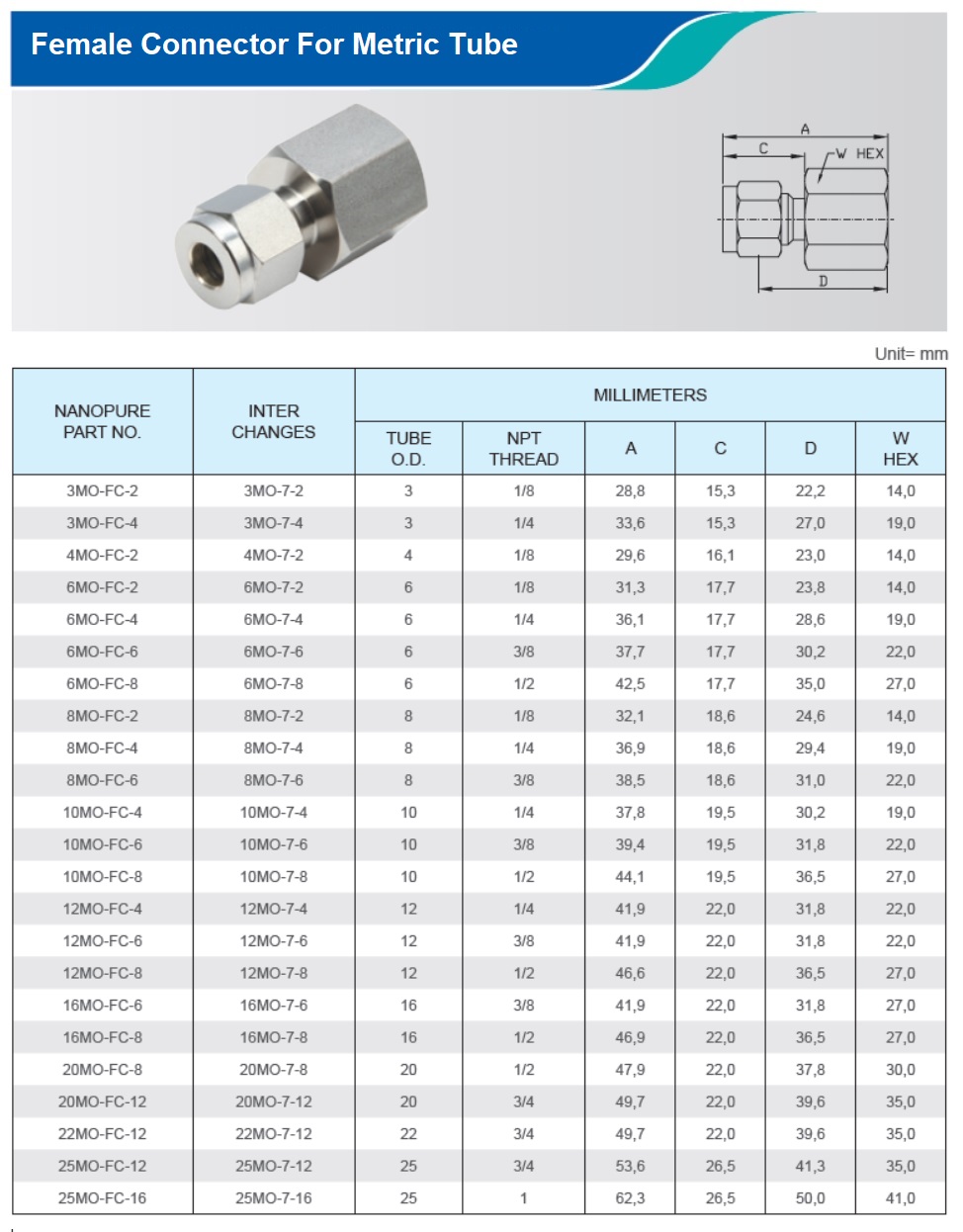 Please check on the below page and Meets sizes & specifications, The Nanopure part number available with sizes selection