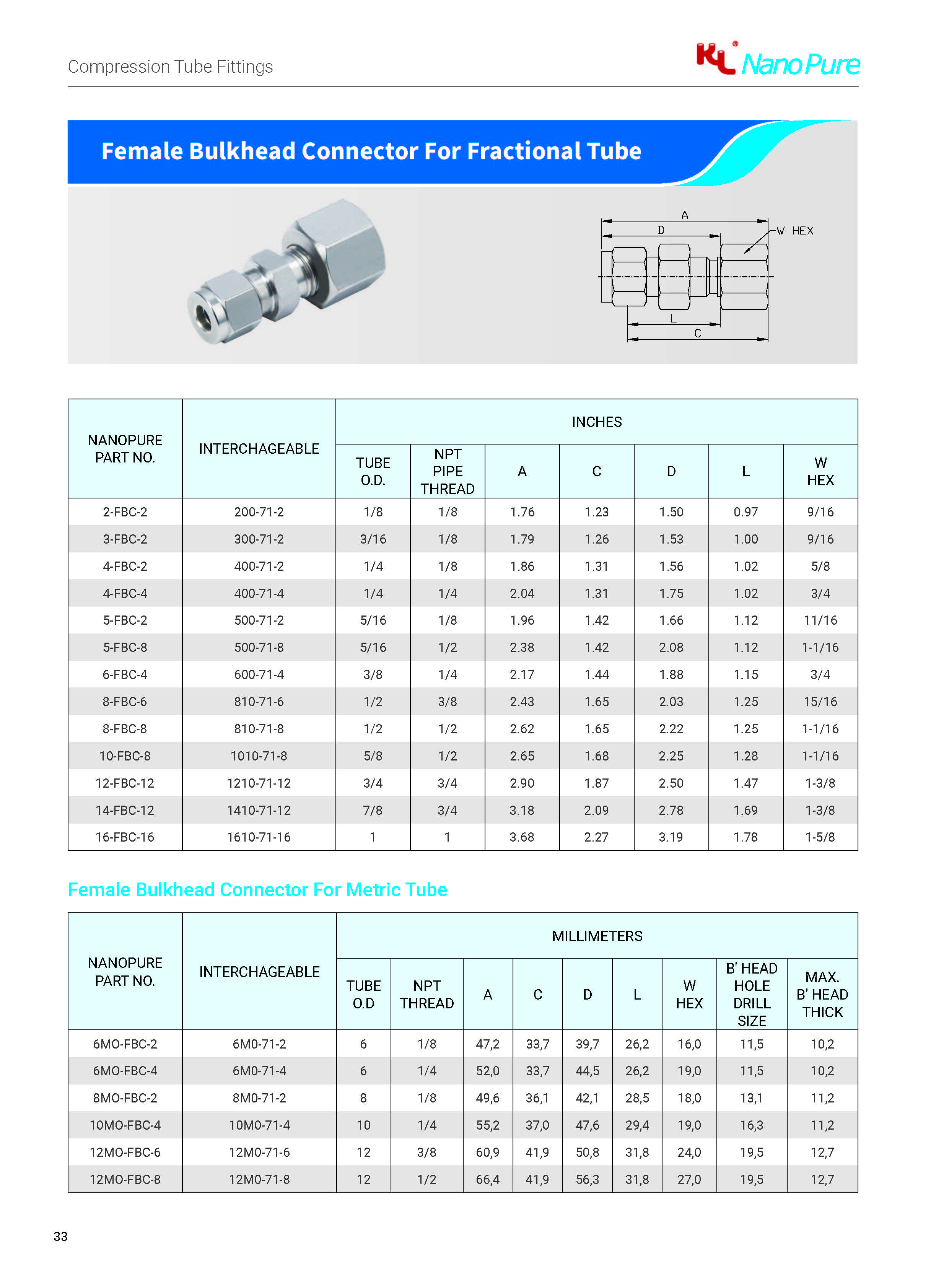 The NanoPure tube fitting has been specifically designed for use on instrumentation, process and control systems, analyzers and environmental equipment employed in chemical, petroleum, power generating and pulp and paperplants. The NanoPure tube fitting has also found extensive application in other fields where a high quality tube fitting is required. Materials: NanoPure fittings are available as standard, 316 stainless steel.