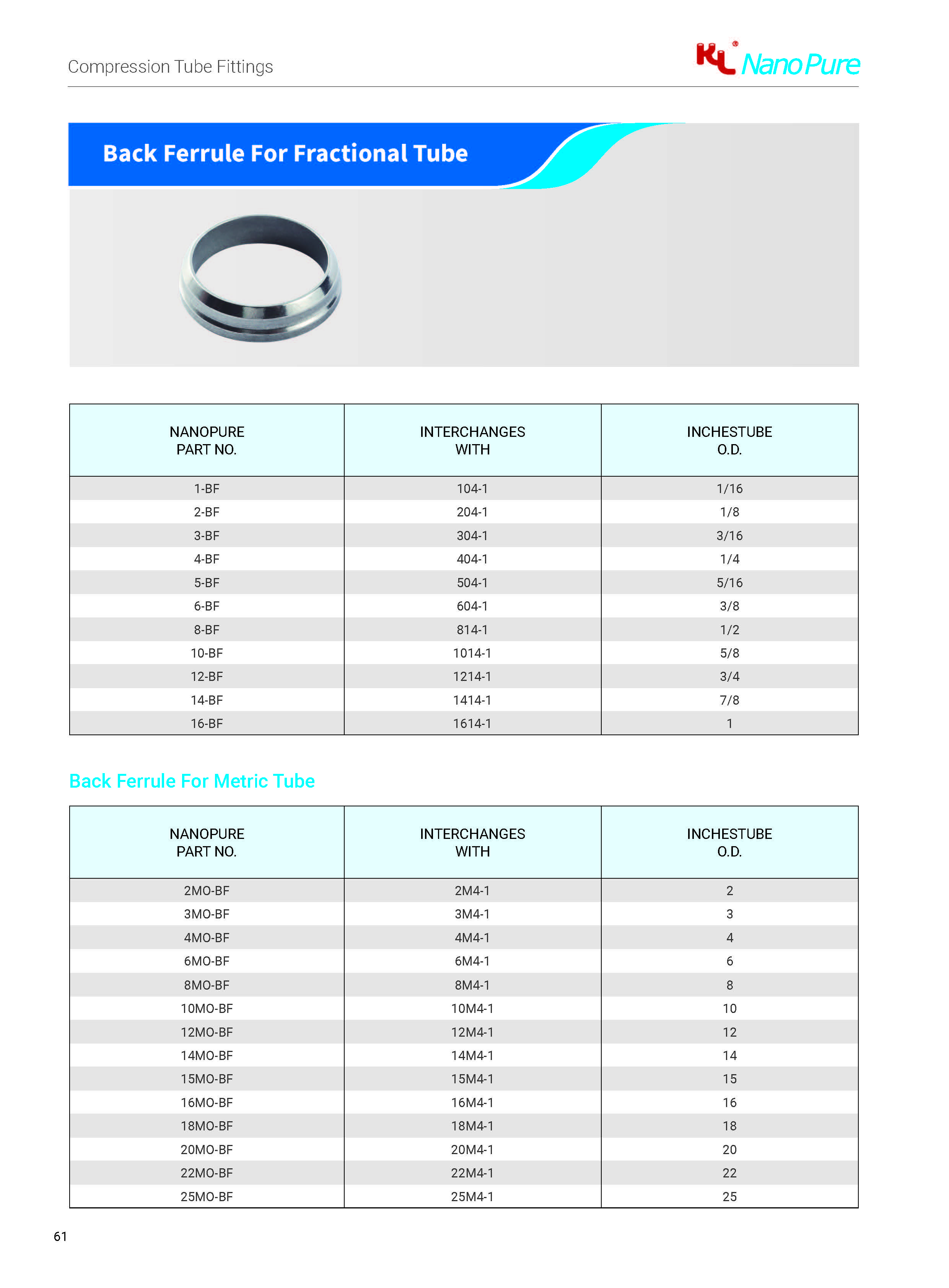 NanoPure fittings are available as standard, 316 stainless steel.