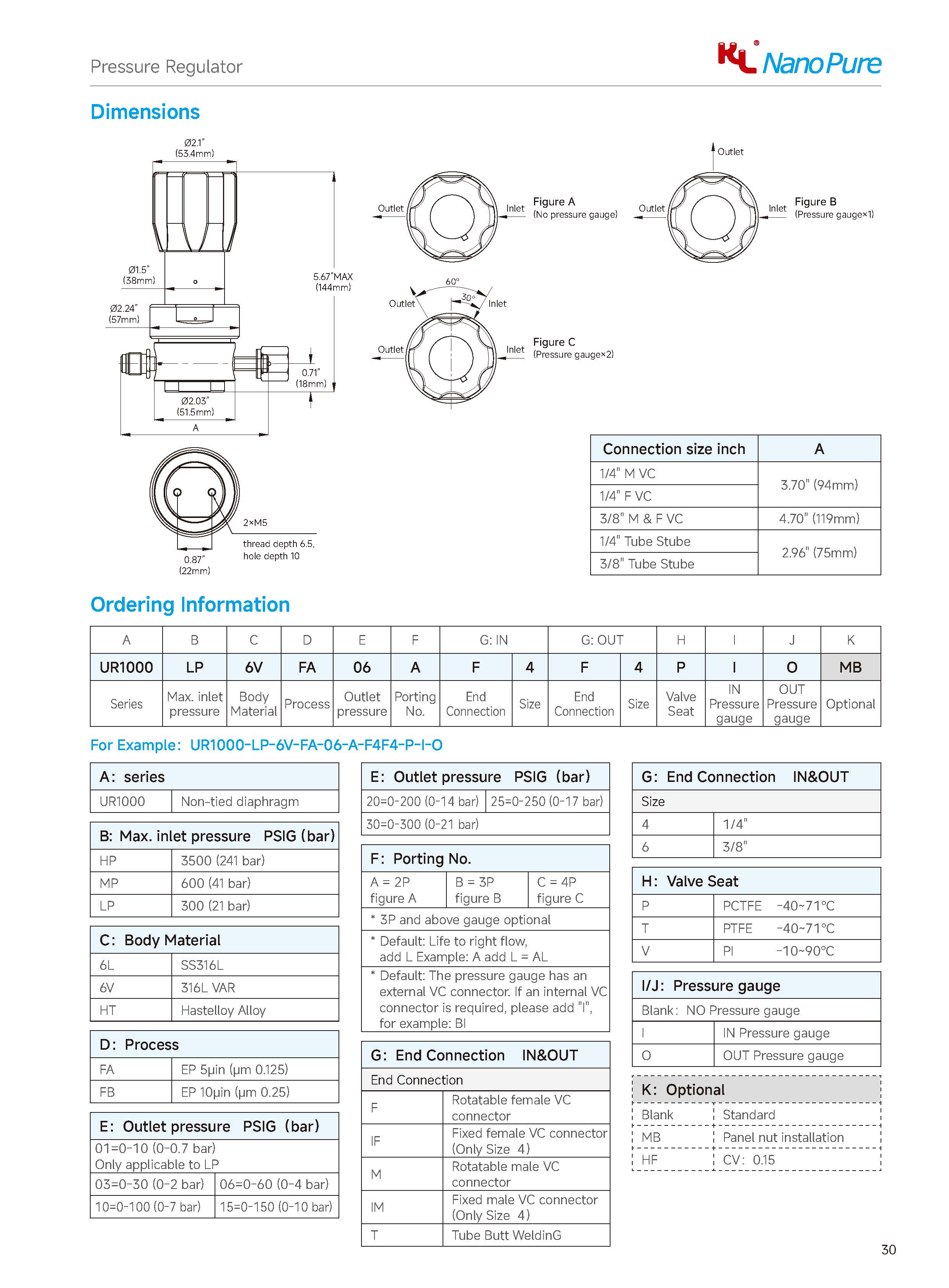 Please check on the below page and Meets the UR1000 Series Regulator, The Nanopure ordering number available with size selection.