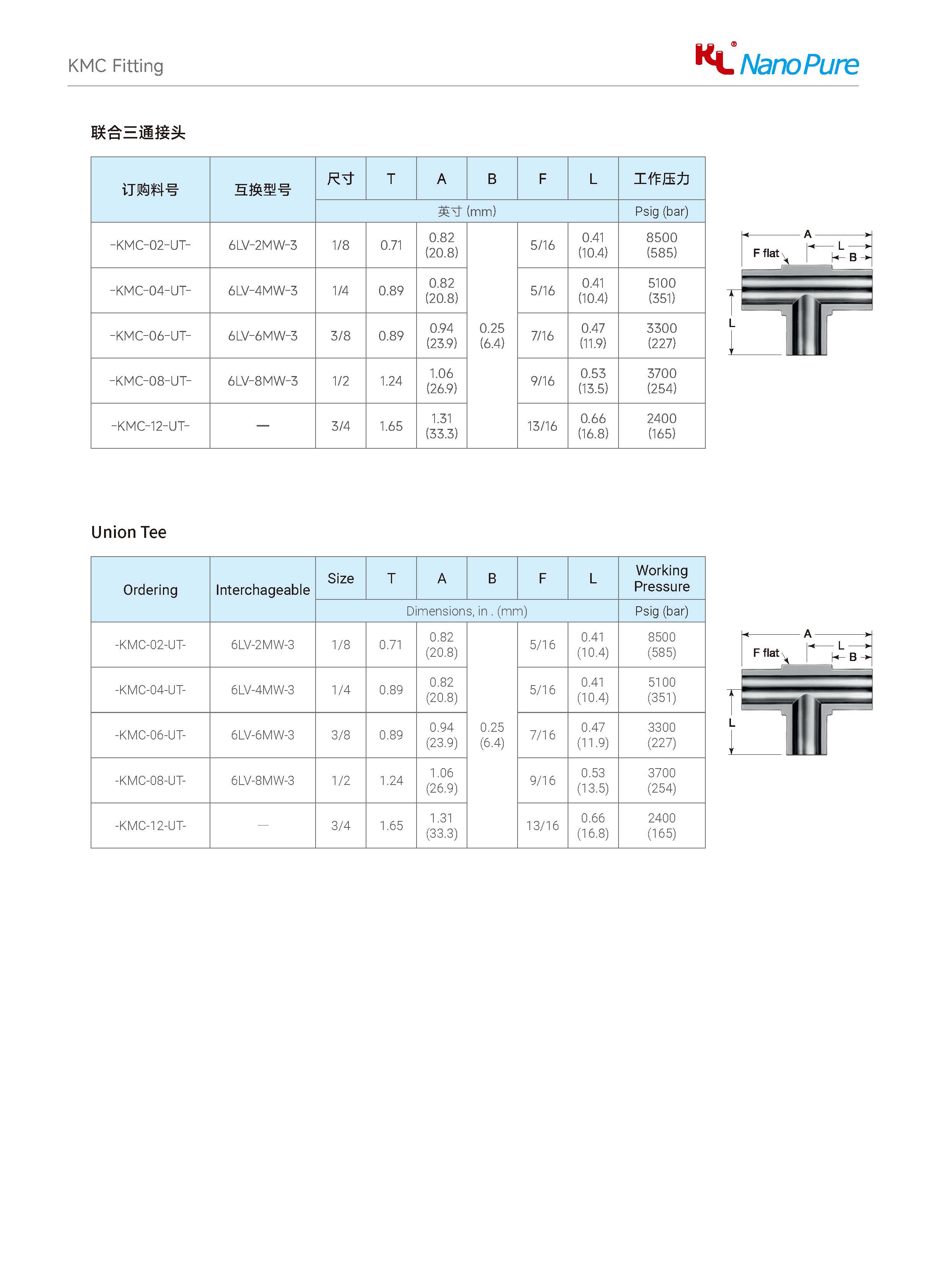 Please check on the below page and Meets the KMC Union Tee various sizes & specifications, The Nanopure ordering number available with size selection.