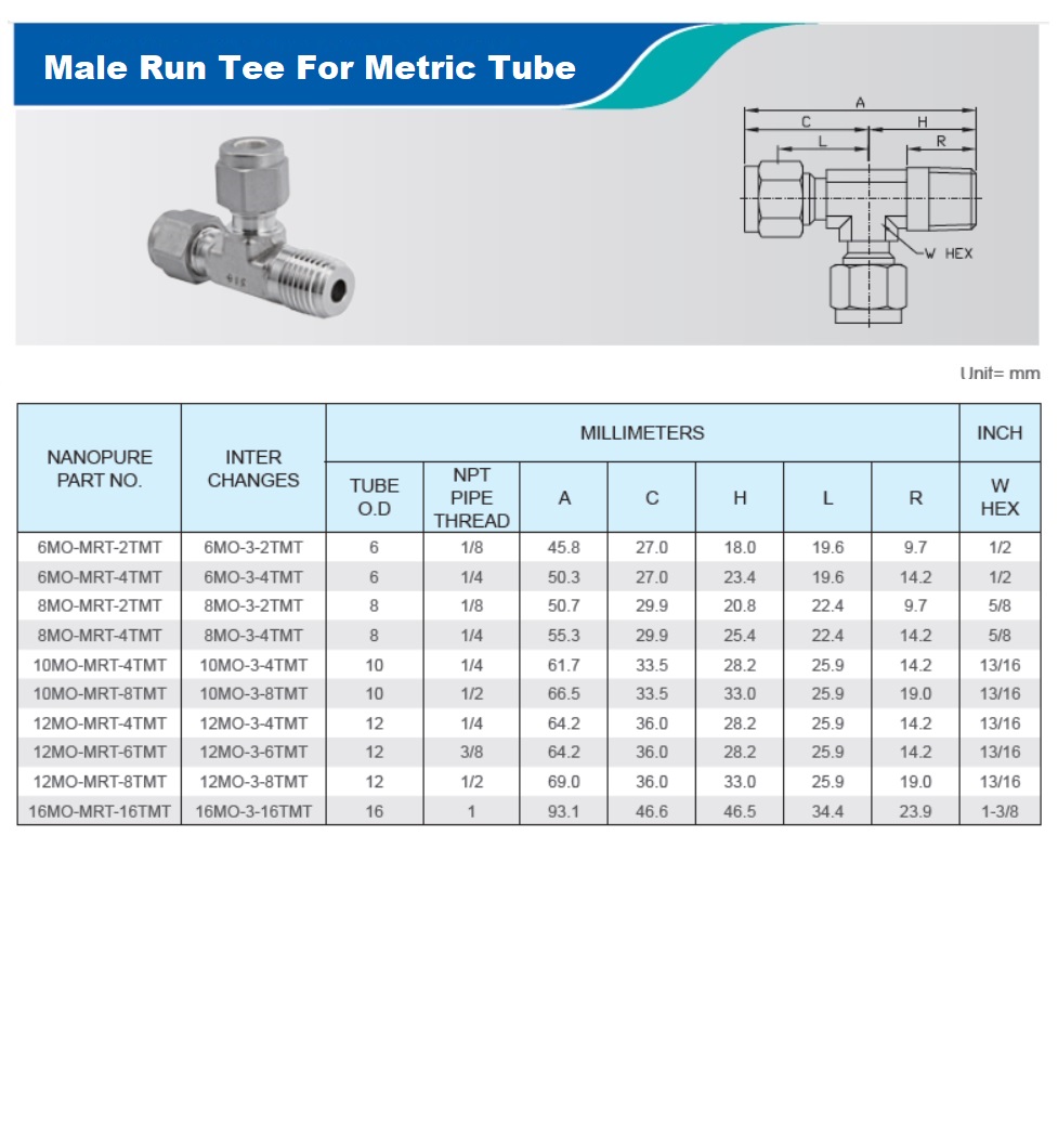 Male Run Tee For Metric Tube