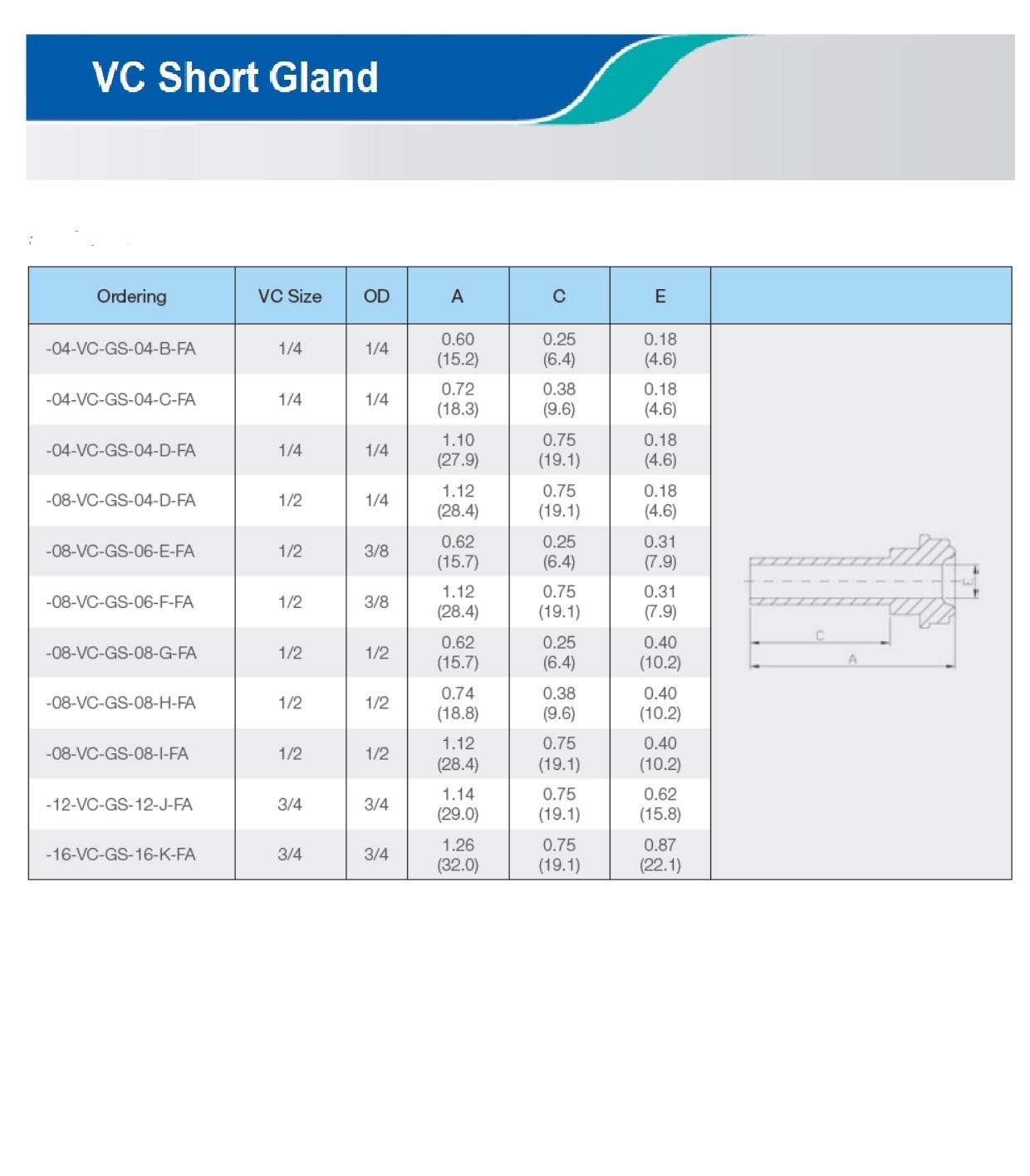 Please check on the below page and Meets the VC Short gland various sizes & specifications, The Nanopure ordering number available with size selection.