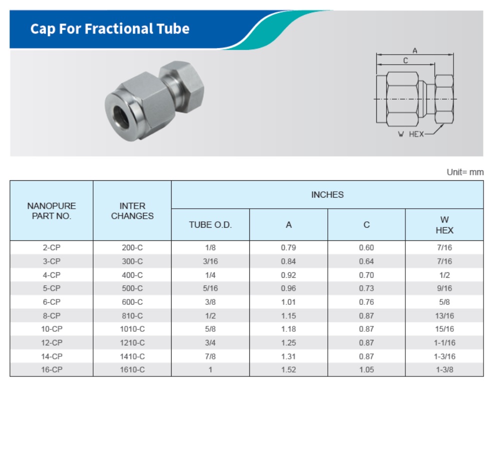 Cap For Fractional Tube