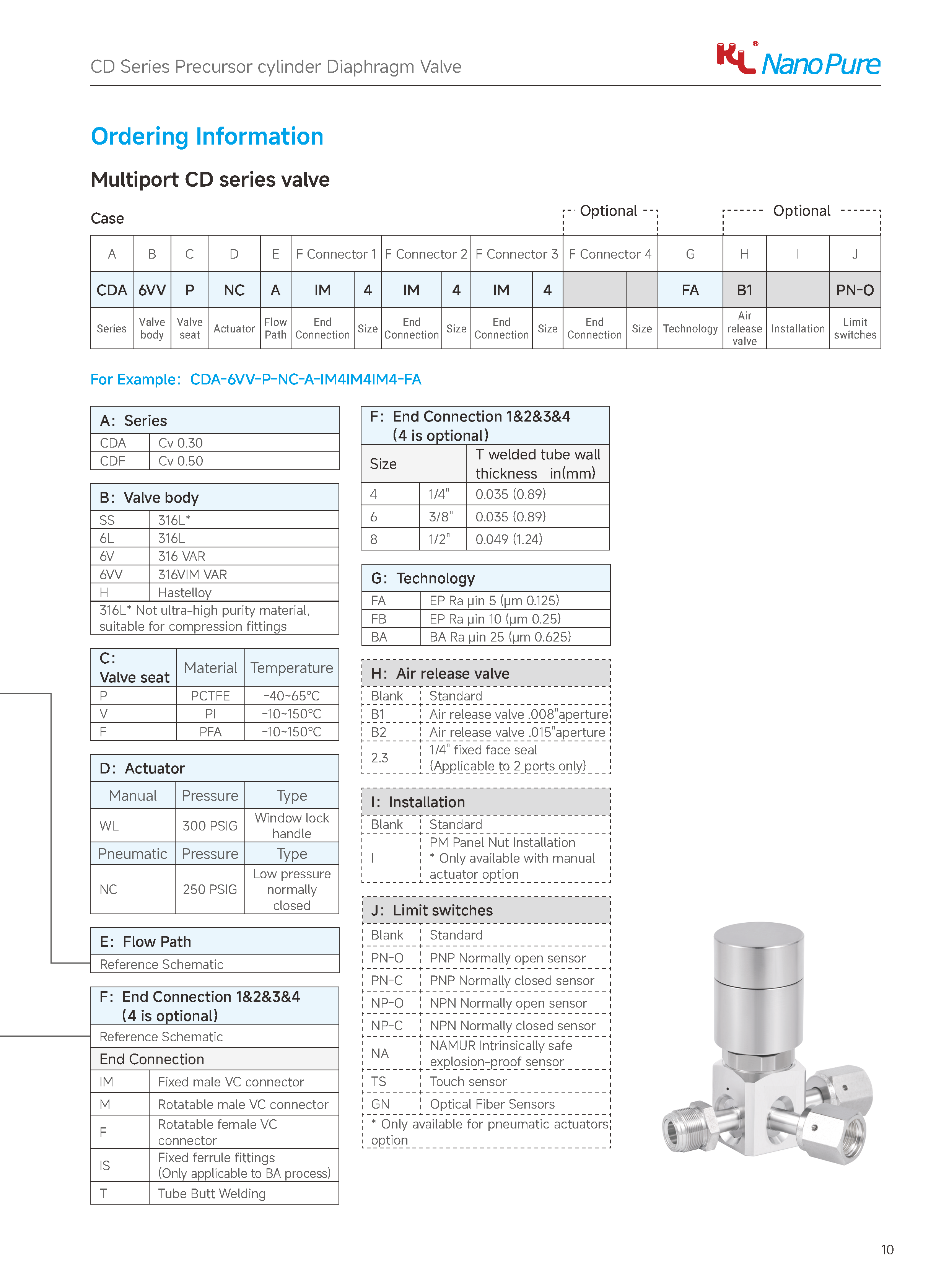 CD Series Multiport Precursor cylinder Diaphragm Valve