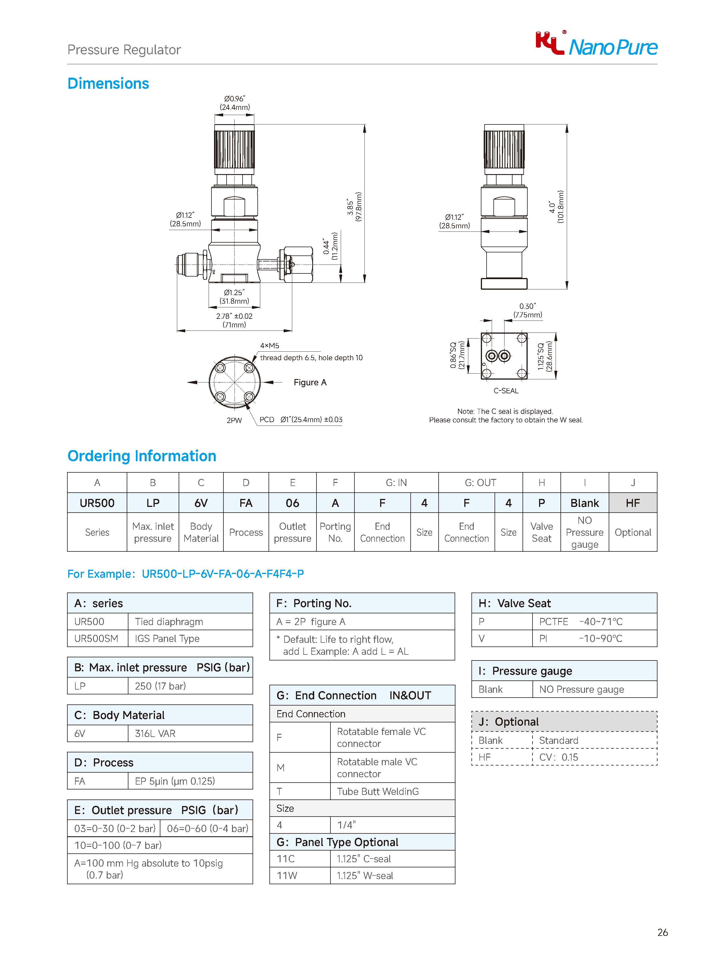 Please check on the below page and Meets the UR500/UR500SM Series Regulator, The Nanopure ordering number available with size selection.