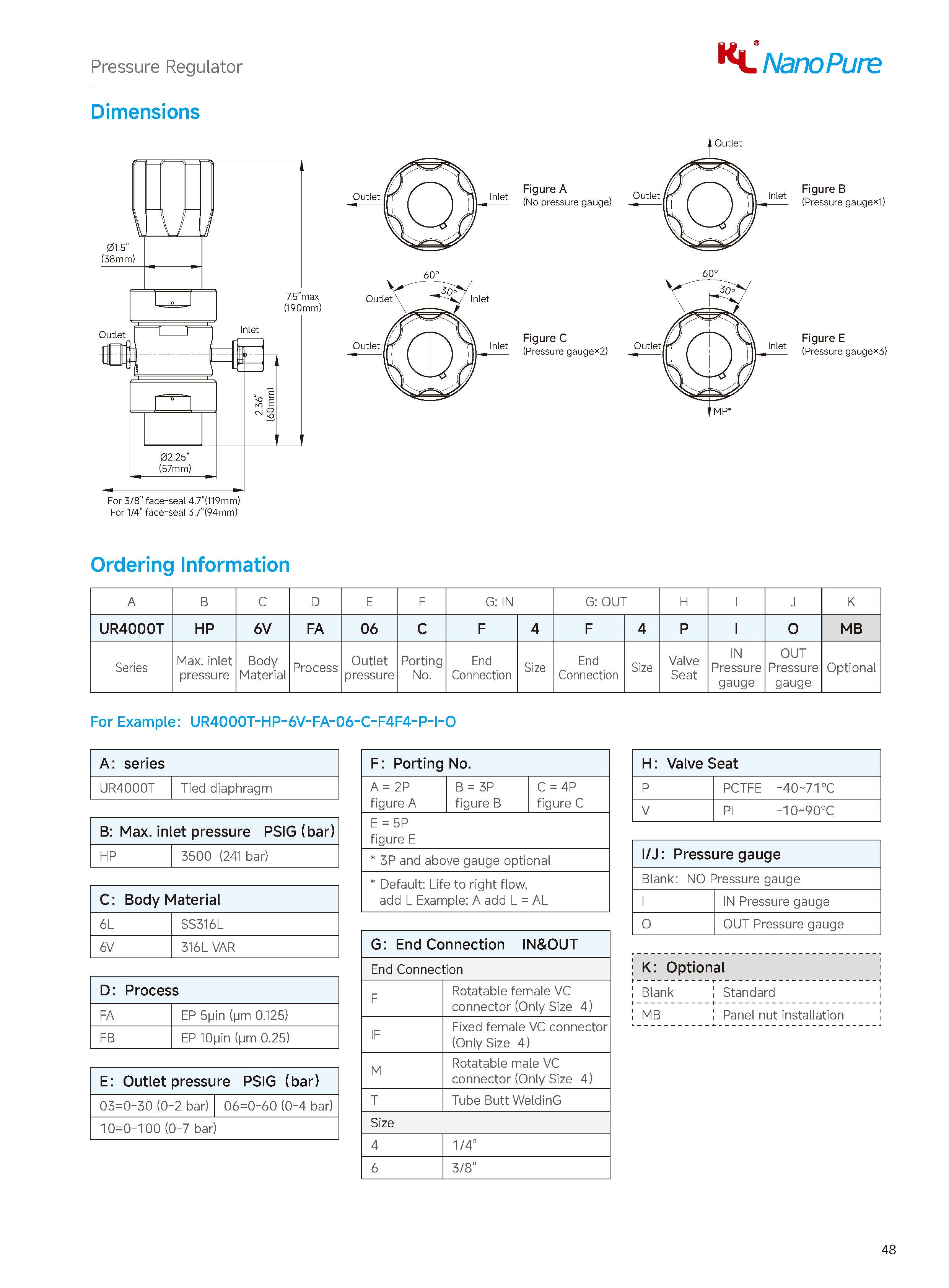 Please check on the below page and Meets the UR3000T Series Regulator, The Nanopure ordering number available with size selection.