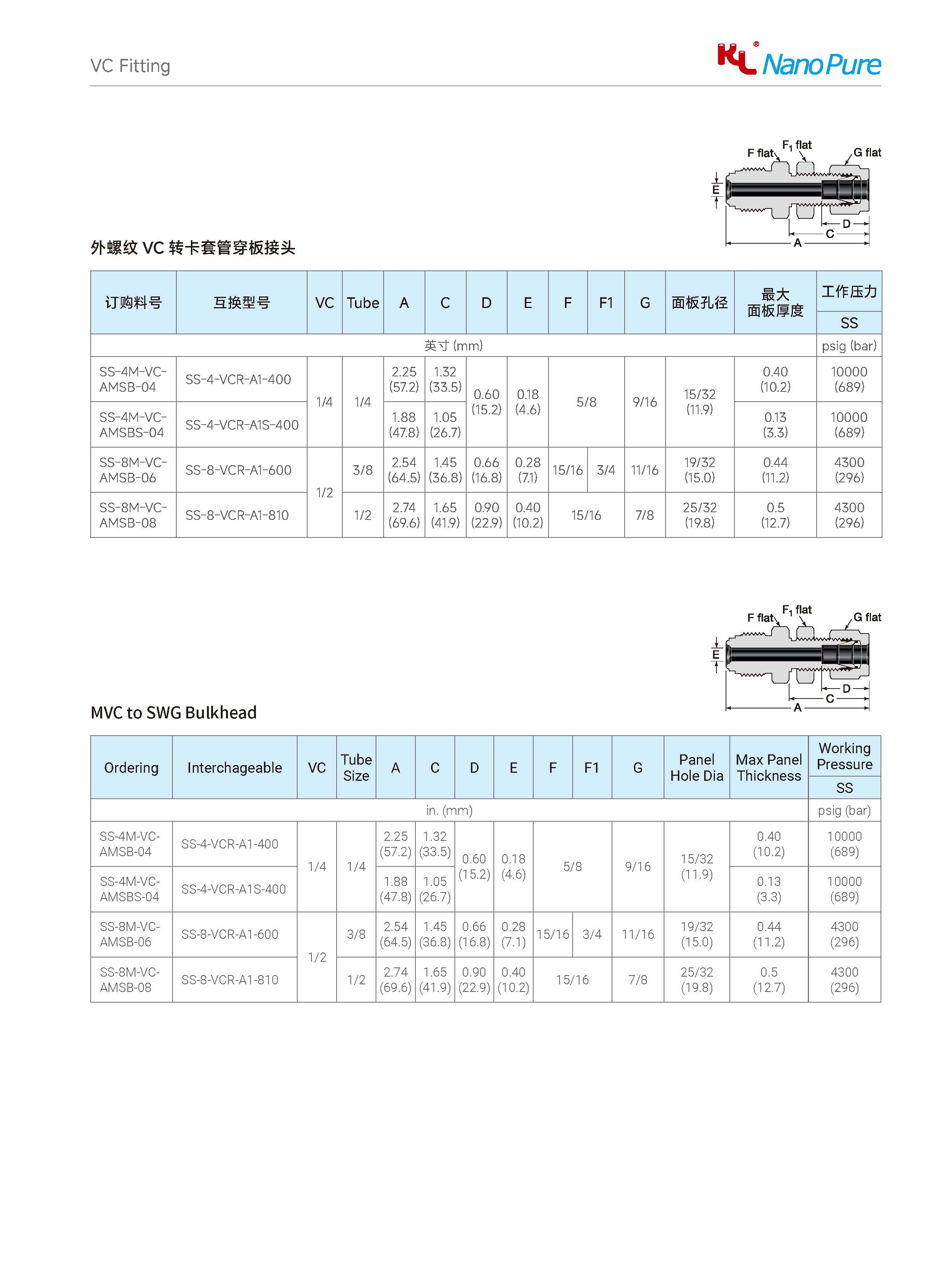 Please check on the below page and Meets the VCMVC to SWG Bulkhead Bulkhead various sizes & specifications, The Nanopure ordering number available with size selection.