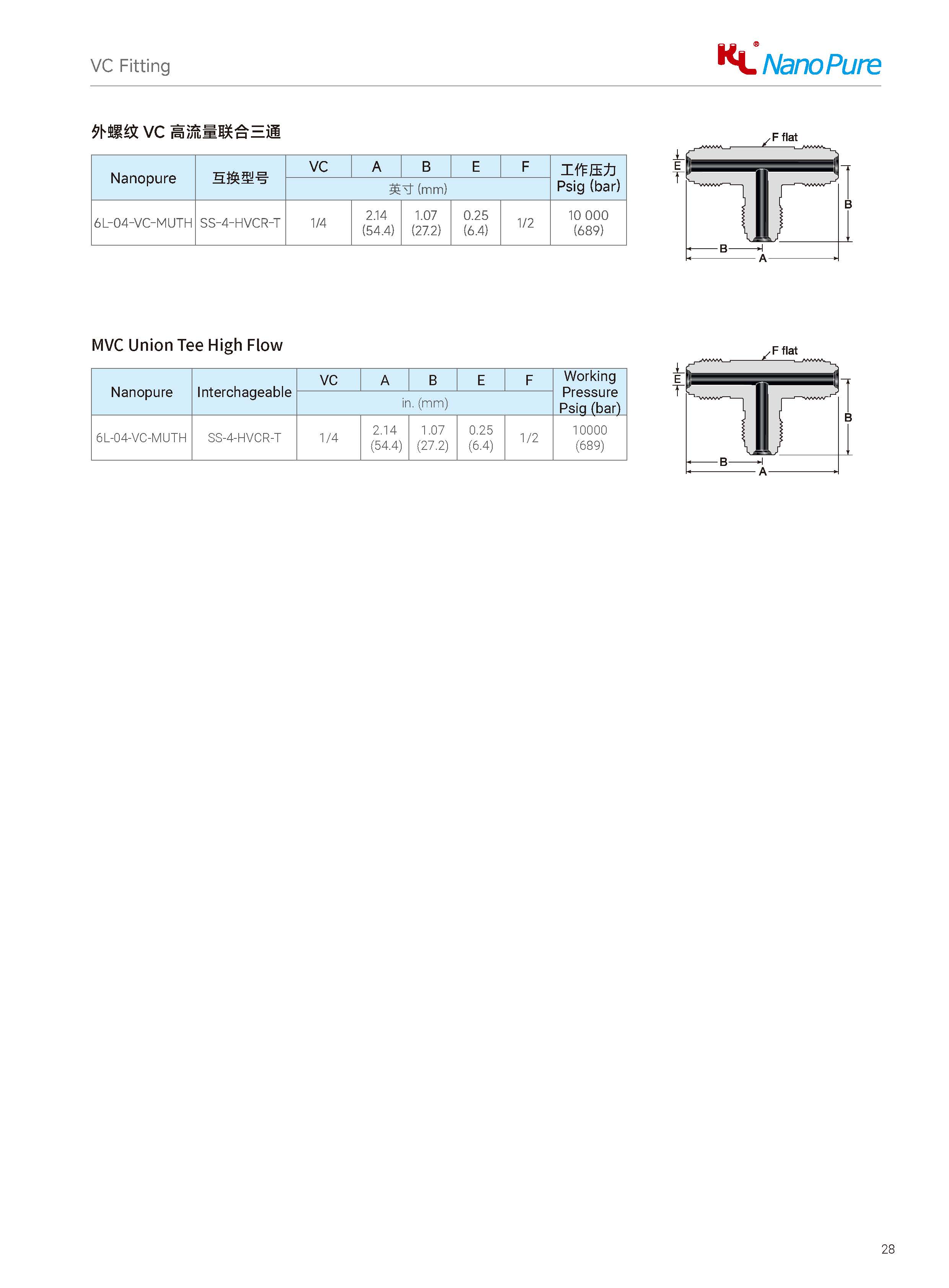 Please check on the below page and Meets the VC MVC Union Tee High Flow various sizes & specifications, The Nanopure ordering number available with size selection.