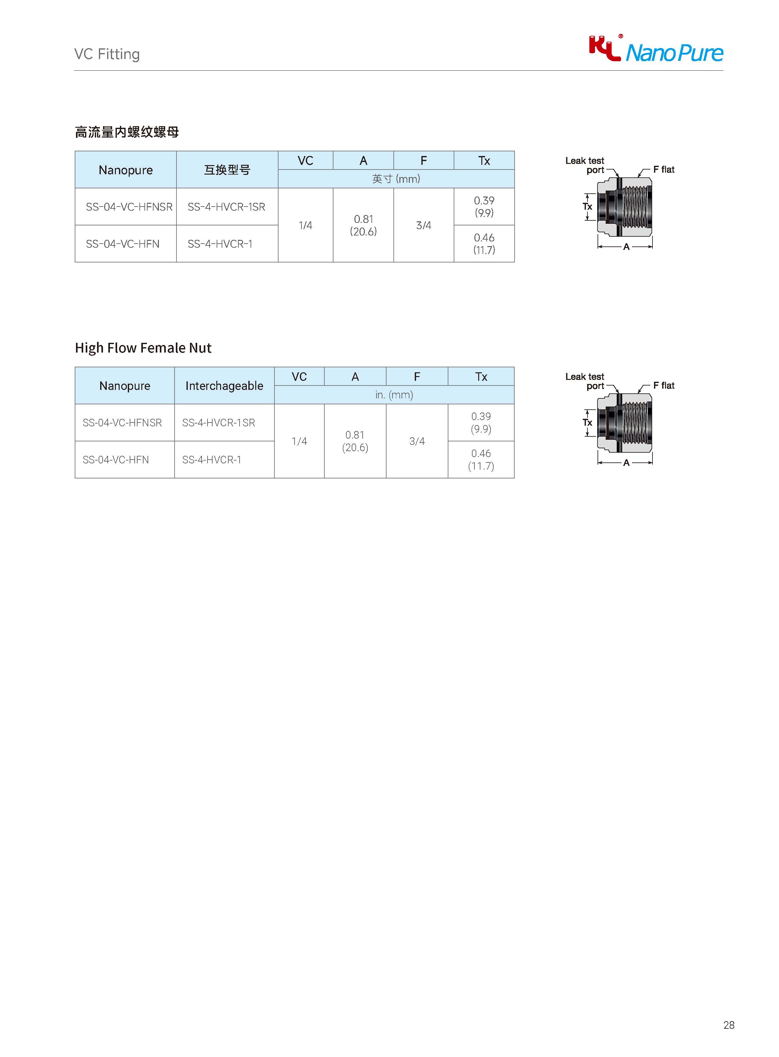 Please check on the below page and Meets the VC High Flow Female Nut various sizes & specifications, The Nanopure ordering number available with size selection.