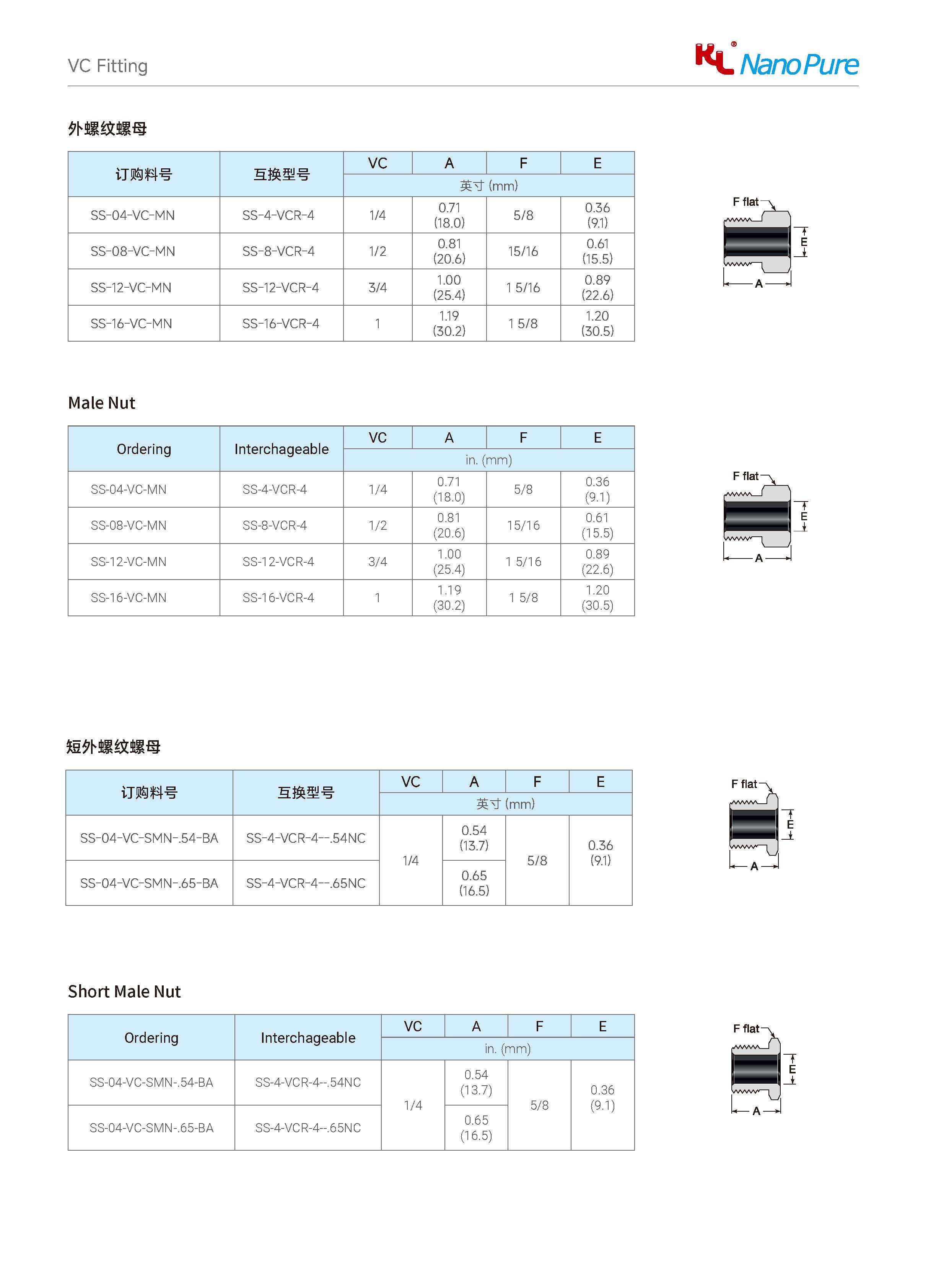 Please check on the below page and Meets the VC Male Nut various sizes & specifications, The Nanopure ordering number available with size selection.