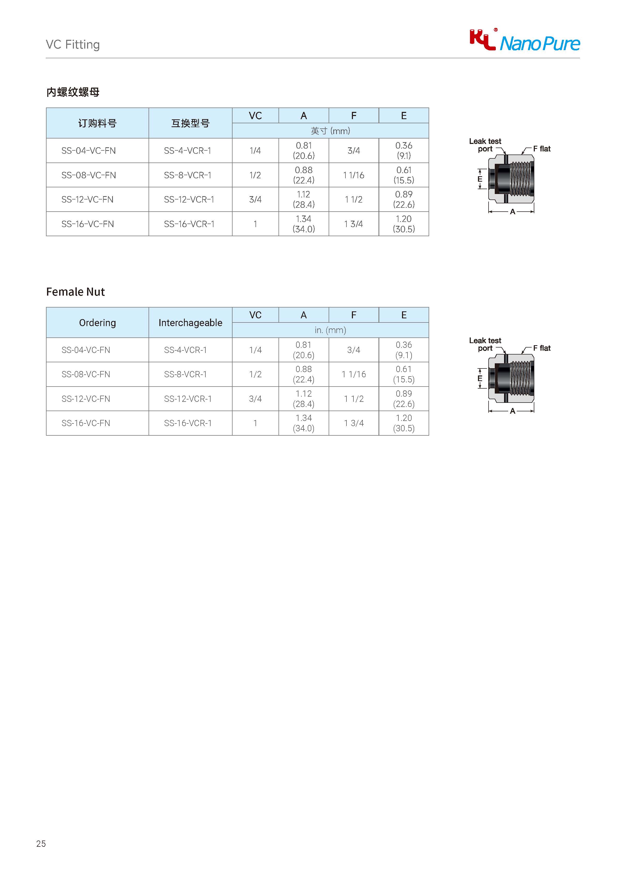 Please check on the below page and Meets the VC Female Nut various sizes & specifications, The Nanopure ordering number available with size selection.