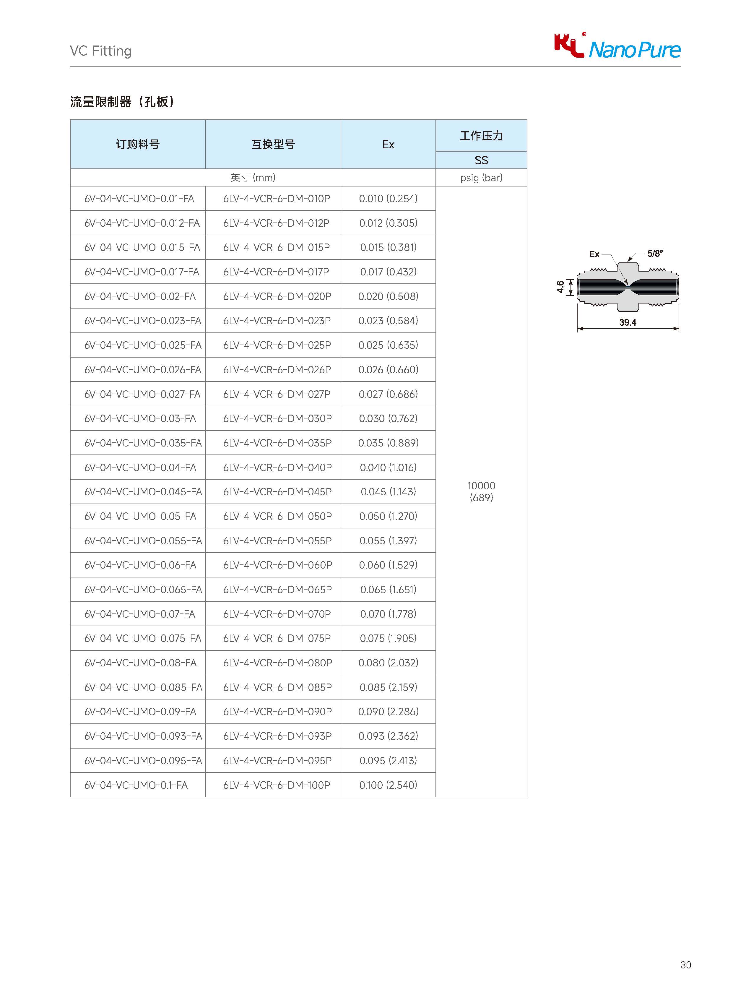 Please check on the below page and Meets the VC Flow Restrictors (Orifice) various sizes & specifications, The Nanopure ordering number available with size selection.