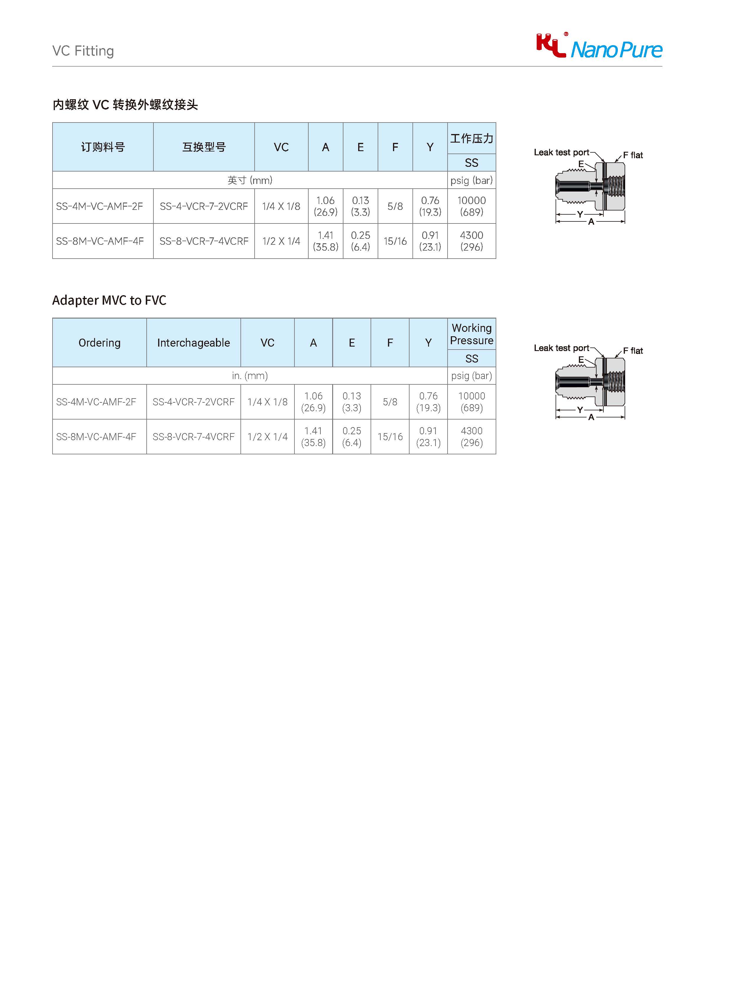 Please check on the below page and Meets the VC Adapter MVC to FVC various sizes & specifications, The Nanopure ordering number available with size selection.