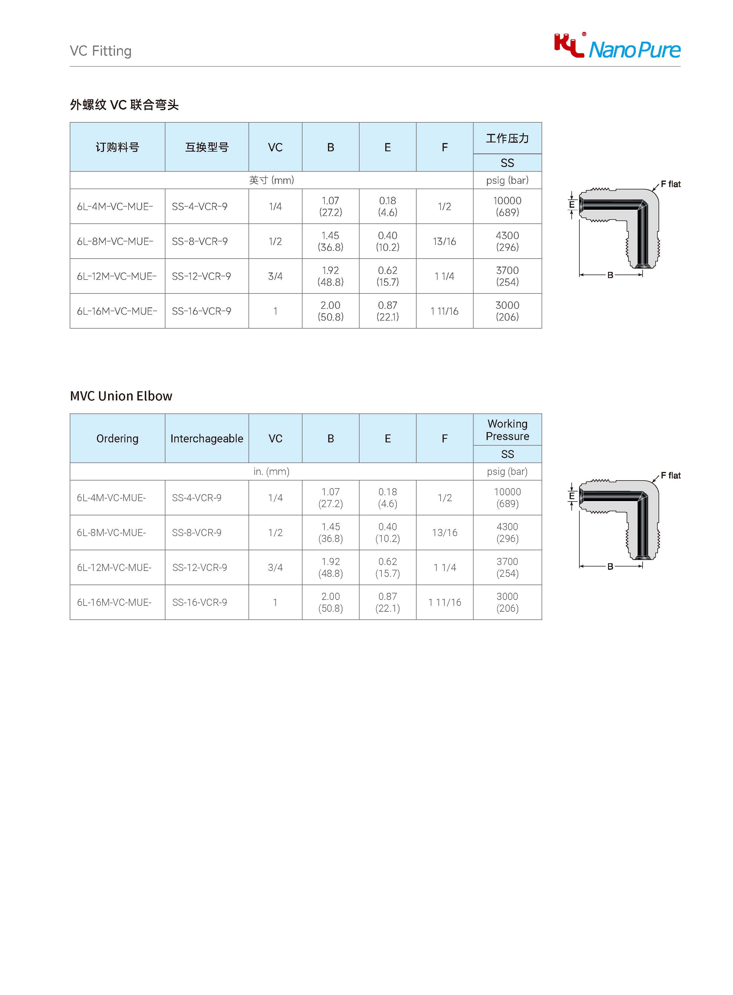 Please check on the below page and Meets the VC MVC Union Elbow various sizes & specifications, The Nanopure ordering number available with size selection.